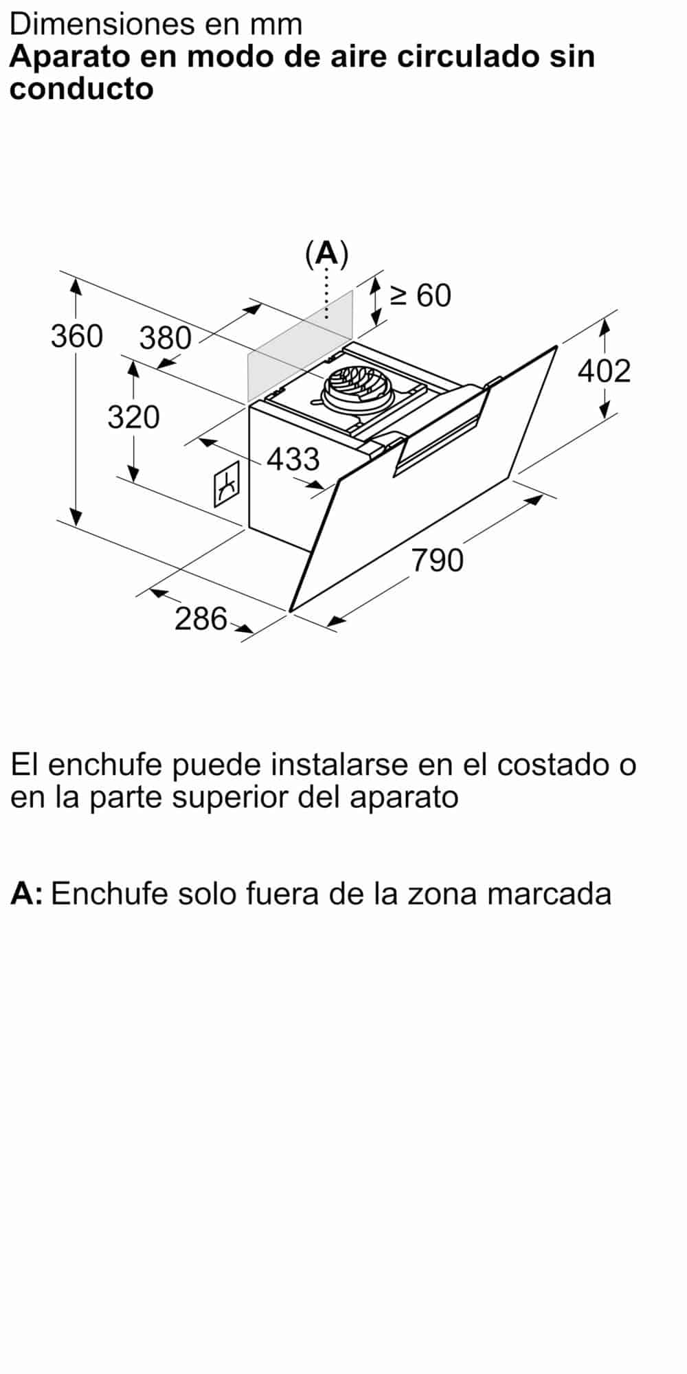 | Para el funcionamiento con recirculación se necesita el kit de recirculación Clean Air Plus (accesorio). |