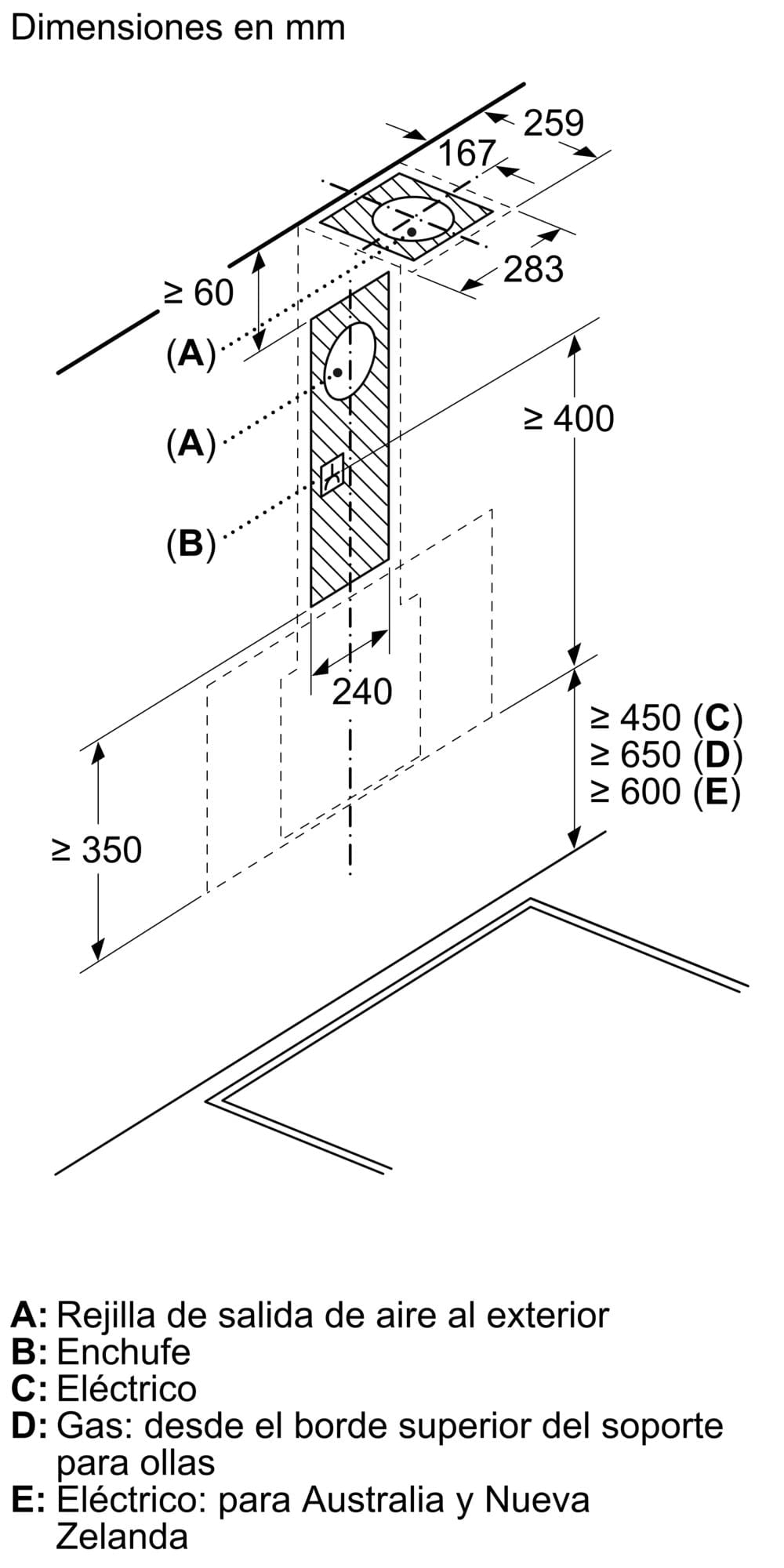 | Altura del conducto decorativo | 550-793/550-880 mm |