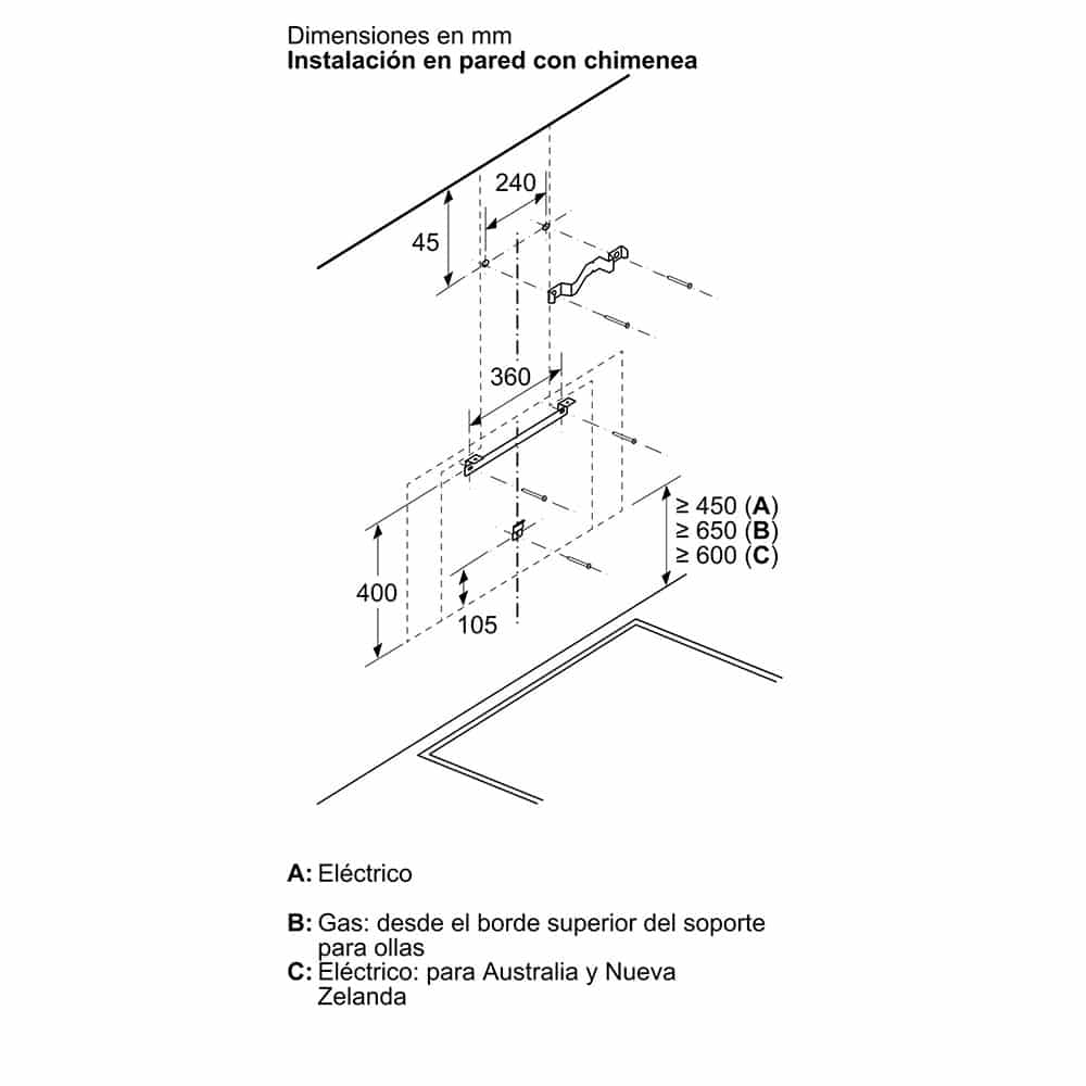 | Altura del conducto decorativo | 420-663/457-750 mm |