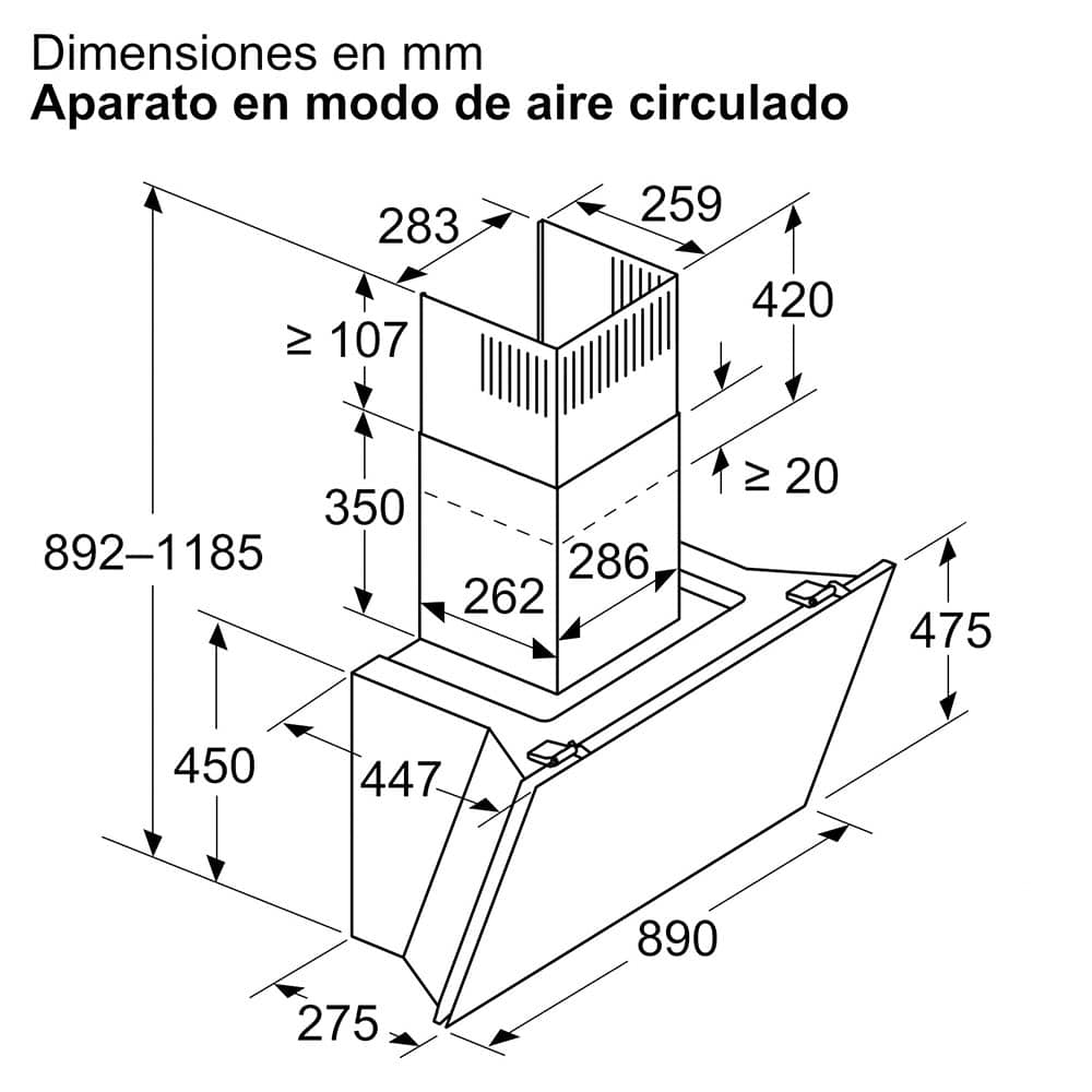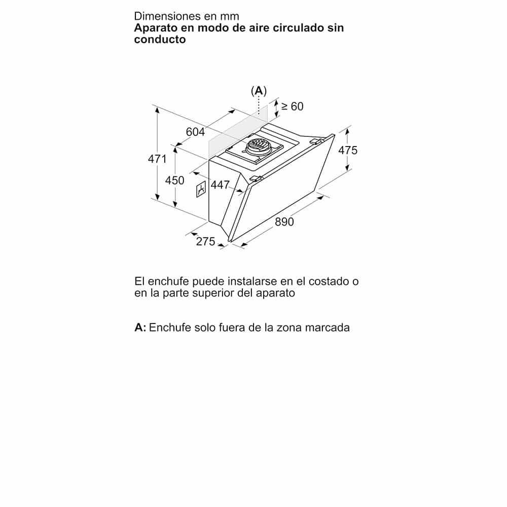 | Set de recirculación necesario | Para el funcionamiento en recirculación se necesita el Set de recirculación o el Set de recirculación de larga duración (ambos son accesorios y se venden por separado) |