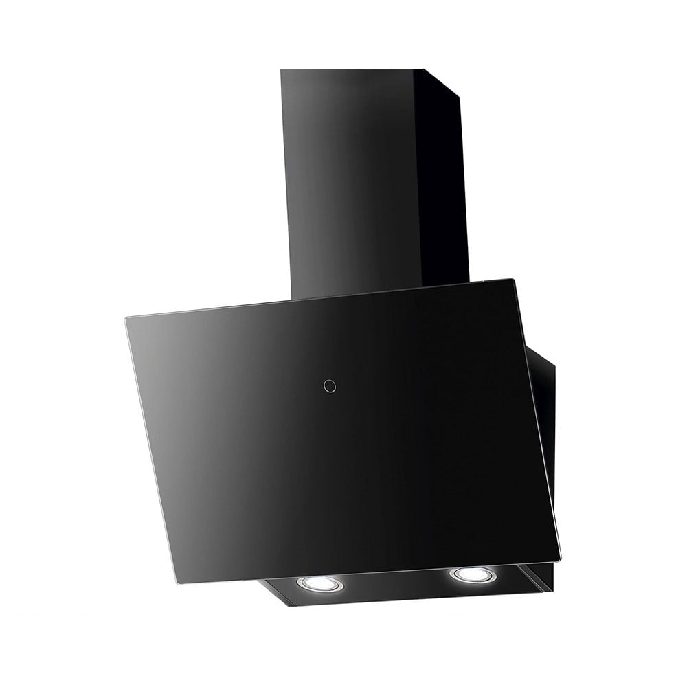 Campana extractora decorativa de pared de elegante diseño en cristal templado negro.