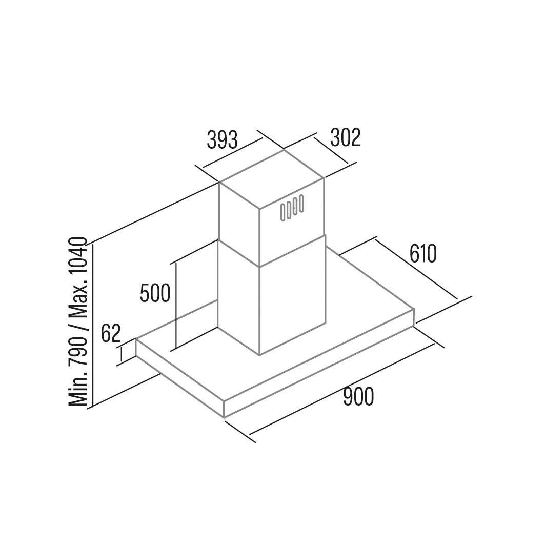 - Capacidad de extracción máxima – mínima (Reg. (UE) nº65/2014): 820m3/h – 200m⅜/h