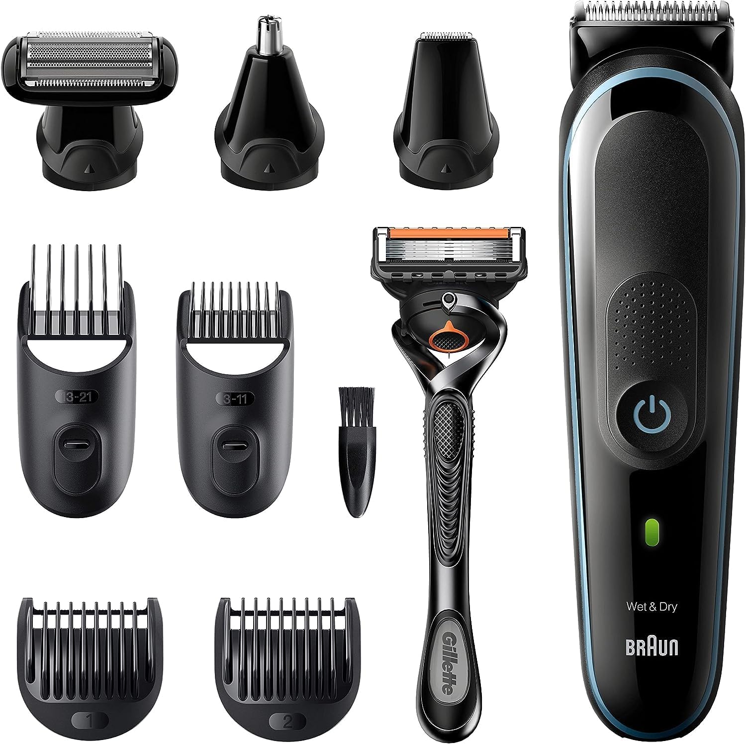 Set de afeitado 9 en 1 para cabeza y cara de Braun.
