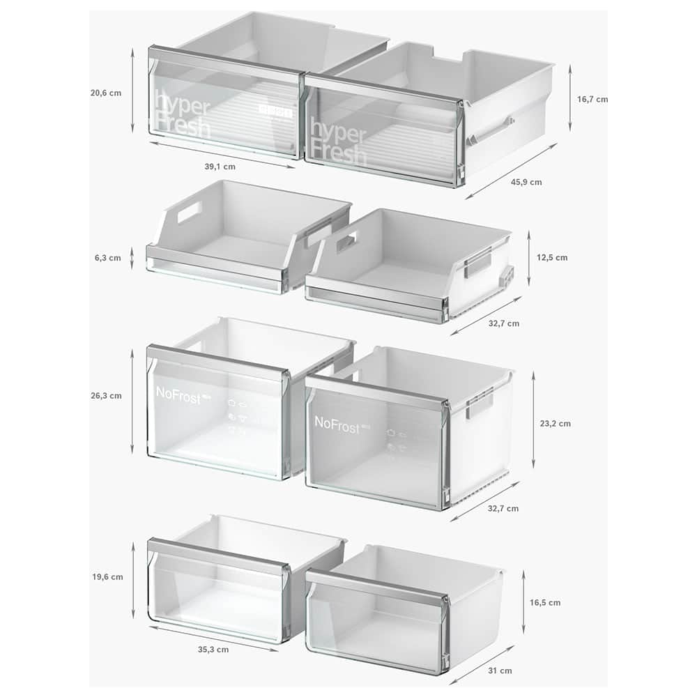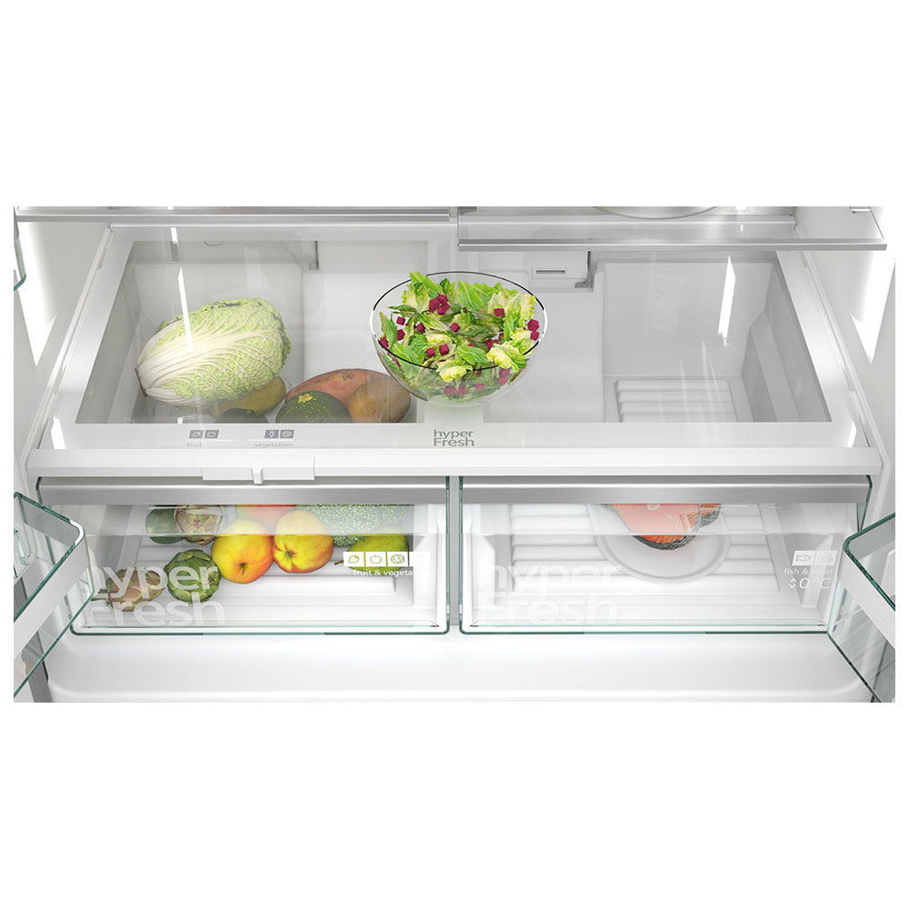 • hyperFresh <0°>: Más espacio para las frutas y verduras.Un cajón de baja temperatura para el pescado y la carne.