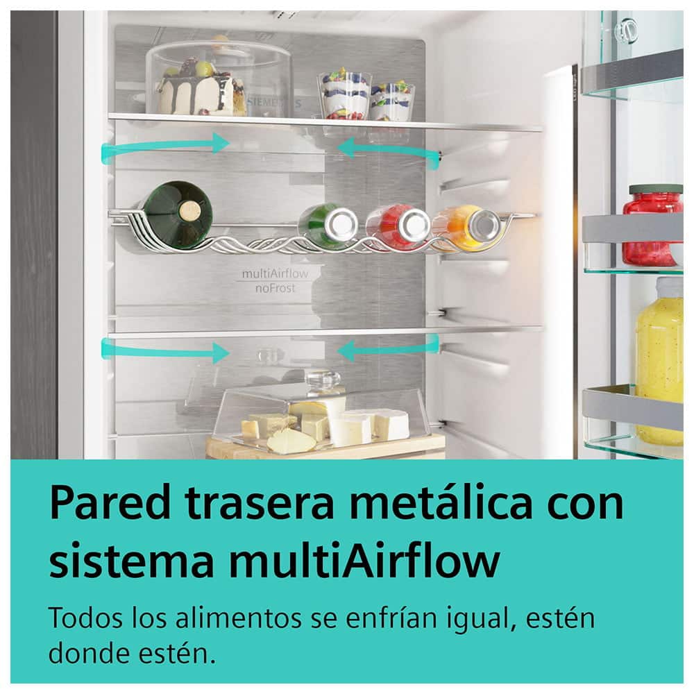 • Pared trasera metálica con sistema multiAirflow: todos los alimentos y bebidas se enfrían igual, estén donde estén.
