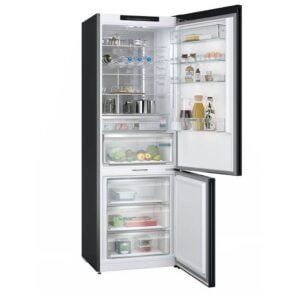 Por fin, un frigorífico que encaja en las cocinas más sofisticadas. El diseño con puerta de cristal negro satinado atrae todas las miradas y combina a la perfección con las cocinas más modernas. Tiene un elegante acabado mate que es muy fácil de limpiar, además de resistente a los golpes y arañazos.