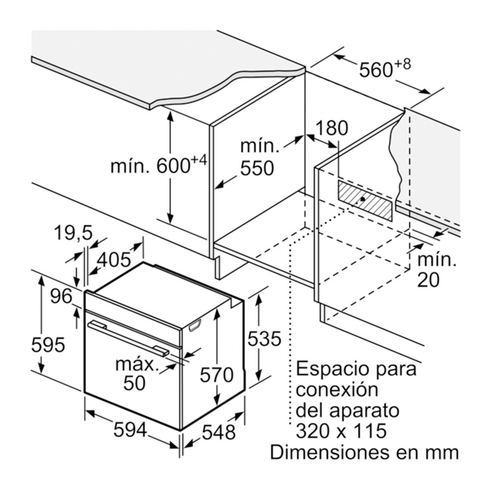 Dimensiones de instalación necesarias (H x W x D): 595x594x548 mm