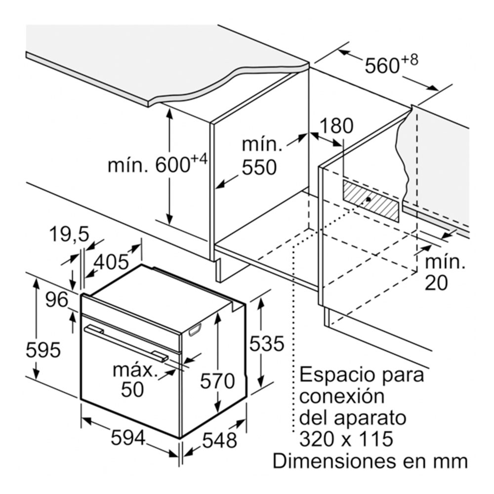 Dimensiones de instalación necesarias (H x W x D): 585-595 x 560-568 x550 mm