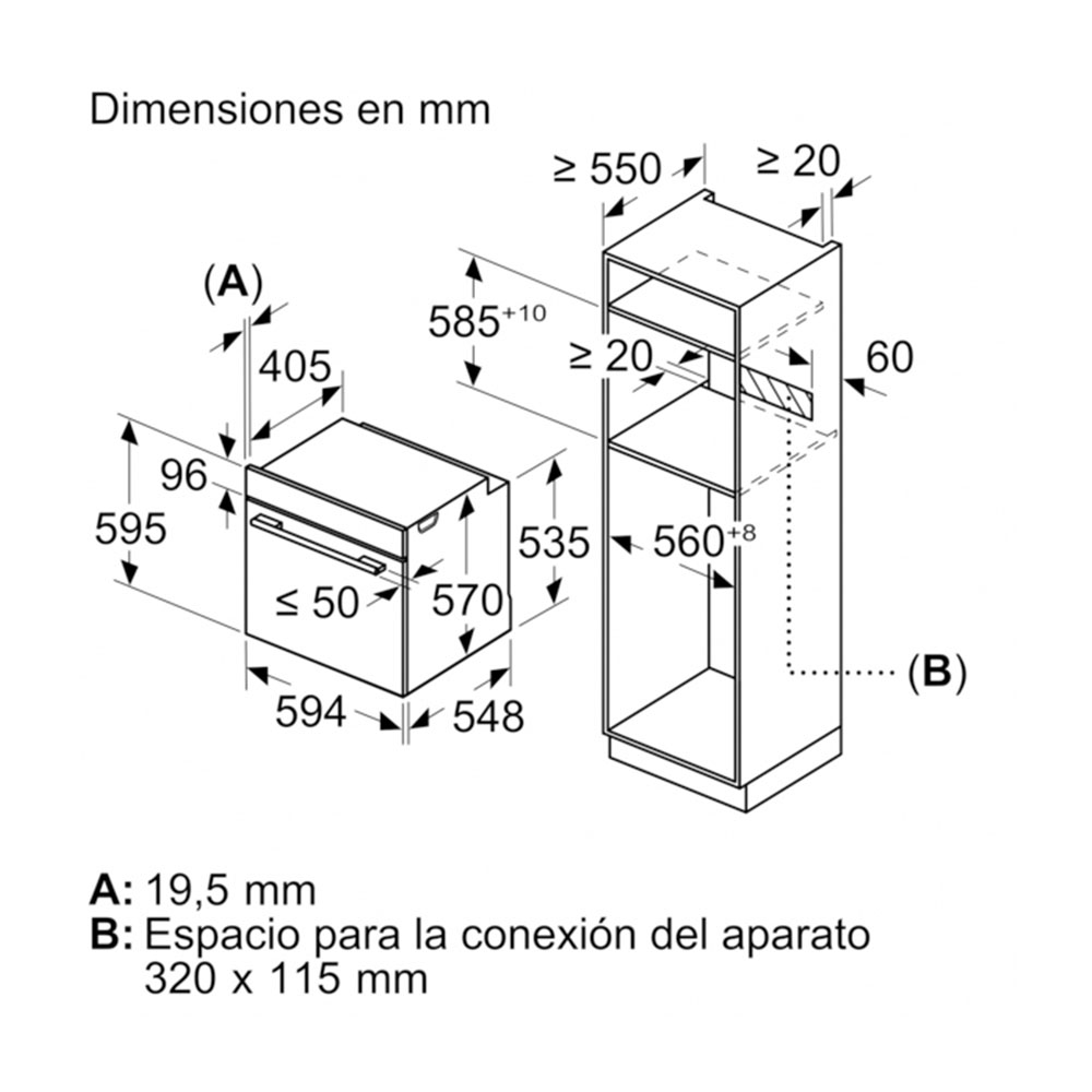 Dimensiones de instalación necesarias (H x W x D):  585-595 x 560-568 x