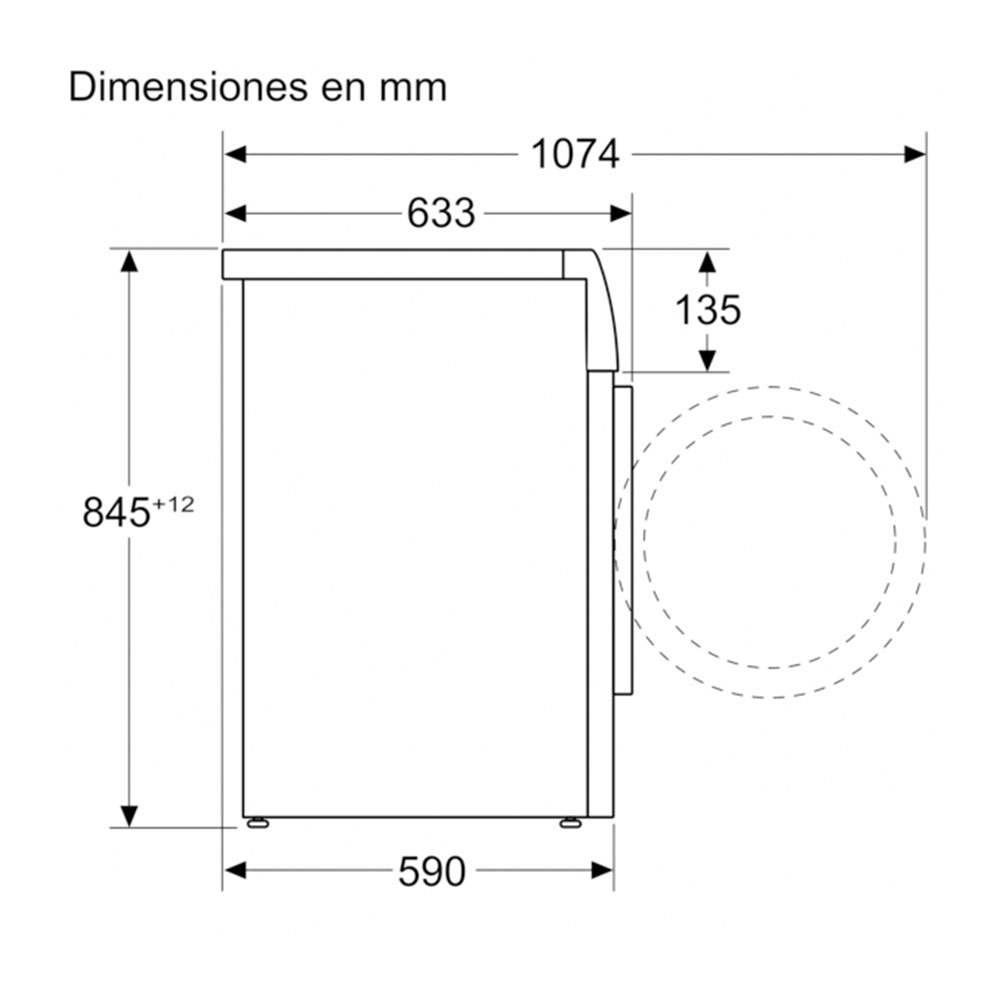 | Fondo con puerta abierta a 90 grados | 1074 mm |