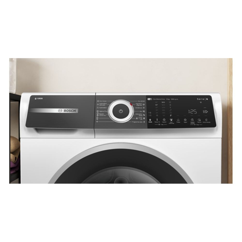 Una lavadora excepcional con i-Dos y el lector de a través de Home Connect, mñaximiza el ahorro de agua y detergente. reduce el consumo de energía hasta en el 20% menos que la mejor clase de eficiencia energética, la clase A. Facilita el planchado con el programa Iron Assist.