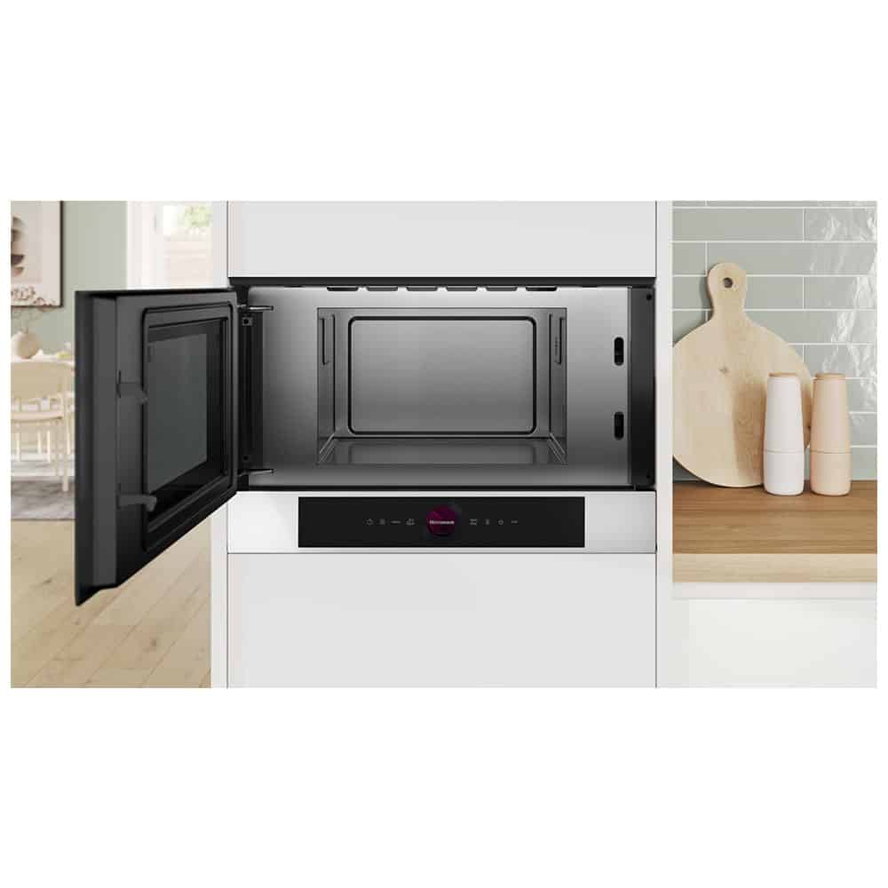 Reloj electrónico con programación de paro de cocción. Panel de mandos Touch Control. Concepto de fácil uso: especialmente sencillo, configuración sin problemas. 4 programas con función microondas y 3 programas para descongelar. Iluminación LED en el interior del horno. Apertura lateral izquierda. Control táctil |