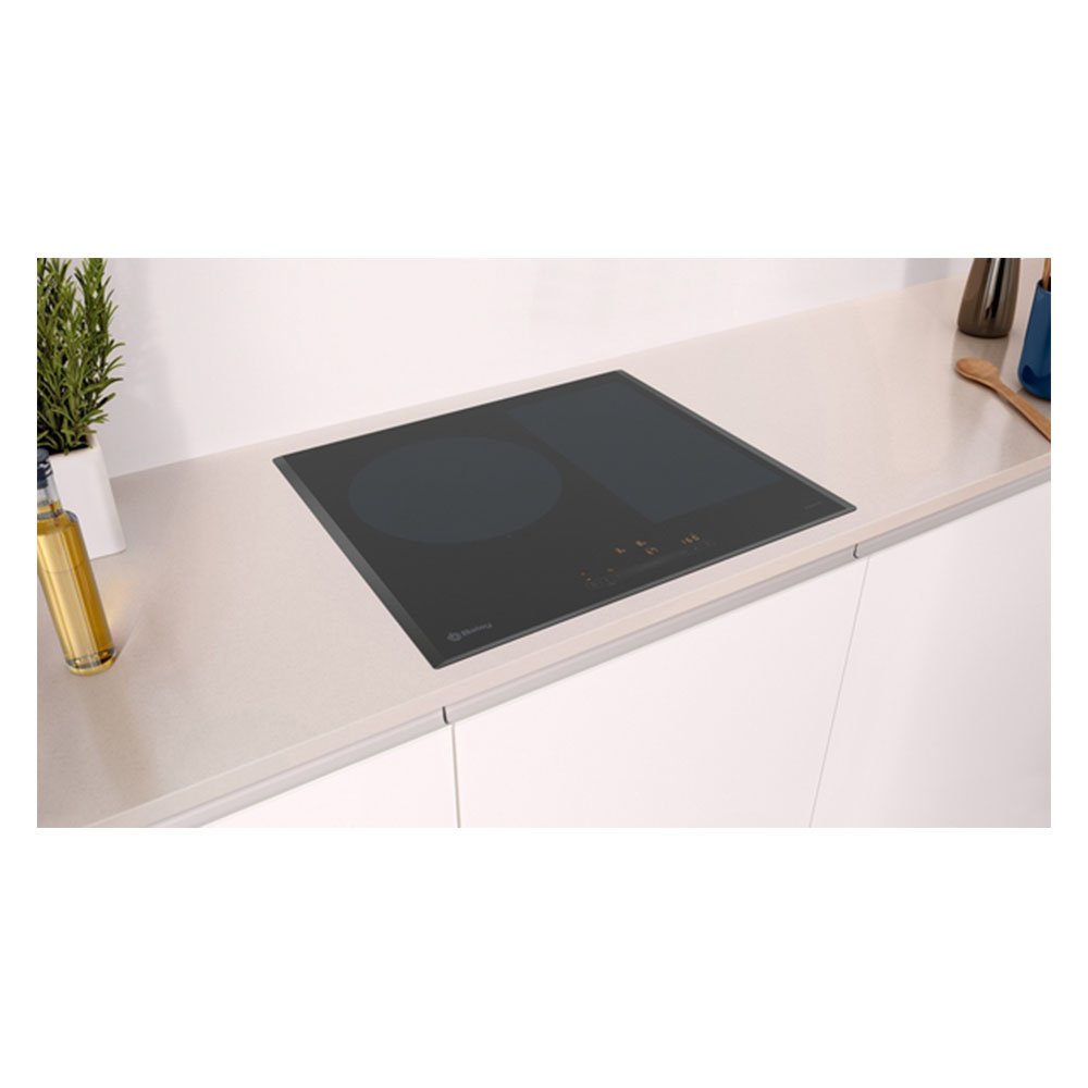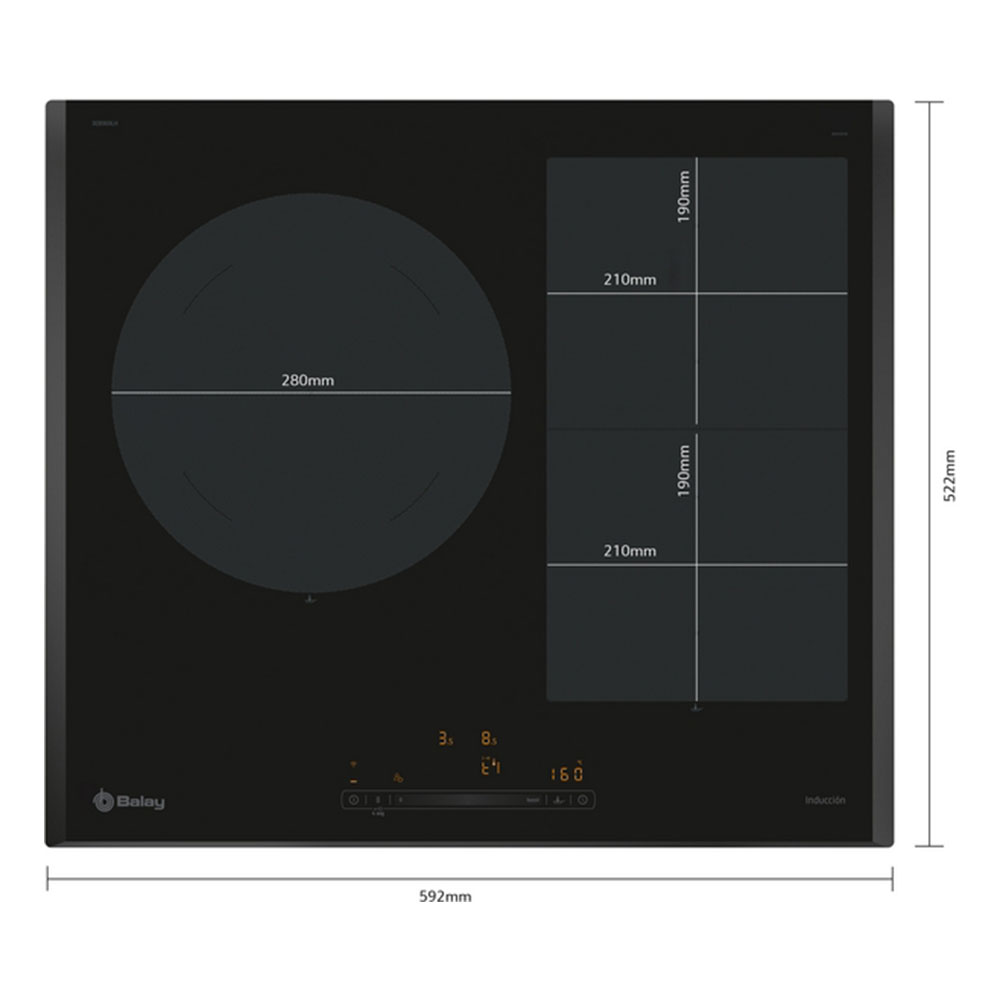 Con esta placa Flex Inducción Balay, podrás cocinar con recipientes de cualquier tamaño, de forma cuadrada, alargada, redonda, ovalada, … Además, dispondrás de una amplia zona de cocción que se puede utilizar como zona alargada o como dos zonas independientes con potencias diferentes. Todo, para que te sientas lo más cómodo posible.