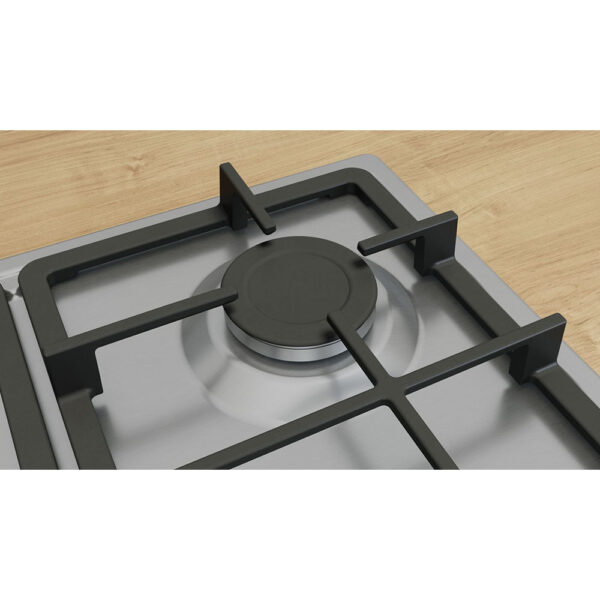 Placa de gas con parrillas de hierro fundido lavables en el lavavajillas.