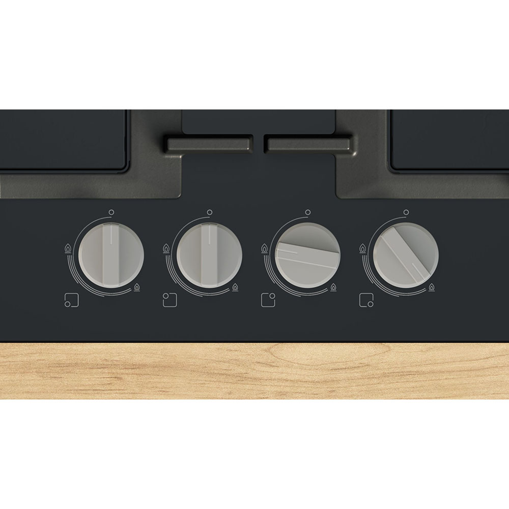 Placa de gas con parrillas de hierro fundido lavables en el lavavajillas.