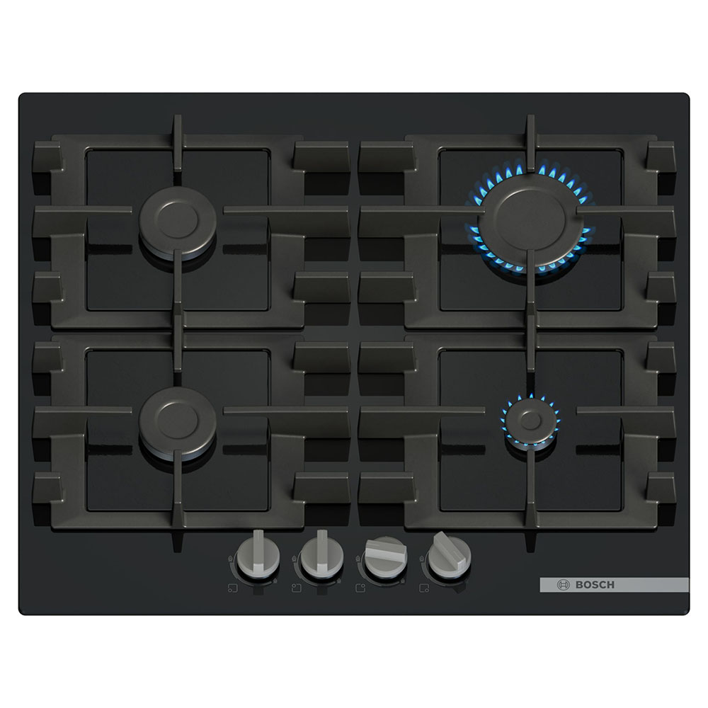 Placa BOSCH PNP6B6K40, 60 cm, 4 Fuegos, Vidrio Templado, Negro, Gas.