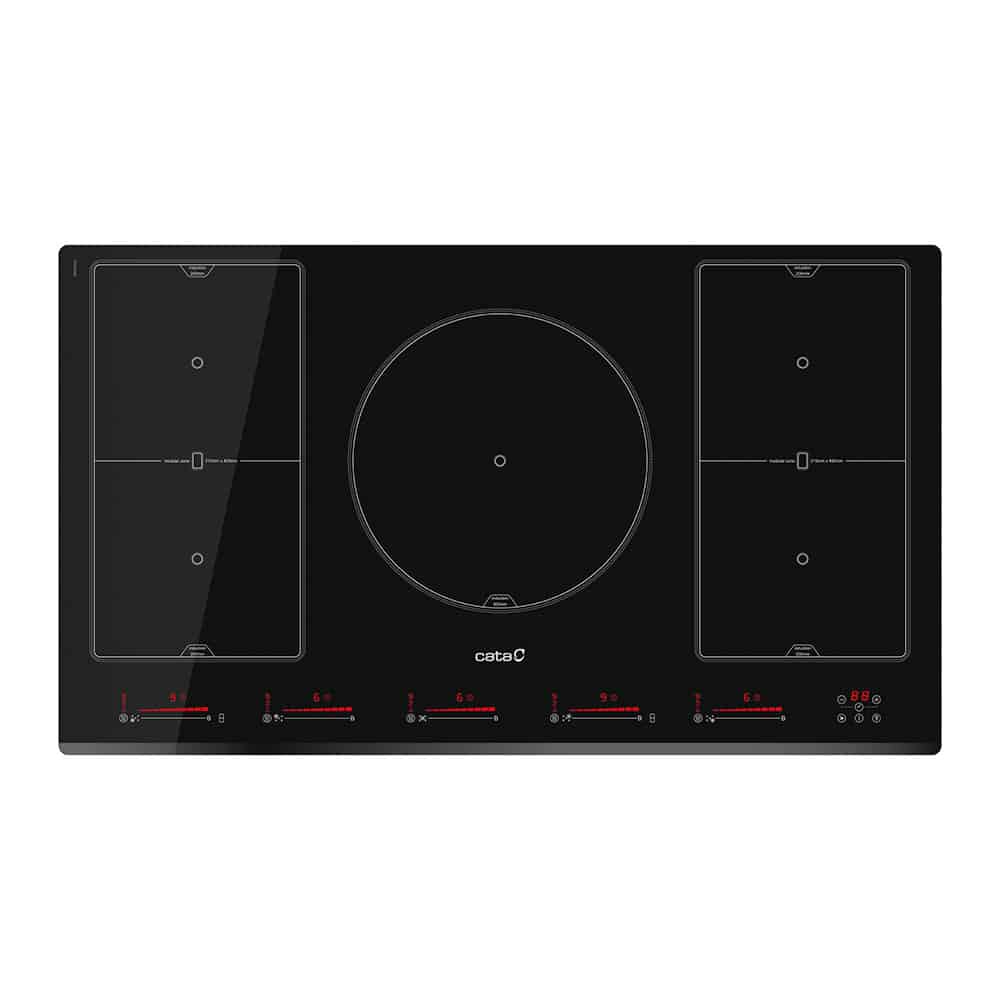 Trasera izquierda: 1 zona con función Booster de 210 x 200mm de 2kW (máx. 2,8kW) - 2 zonas modulares con función Booster 210 x 400mm de 3kW (máx. 3,5kW)