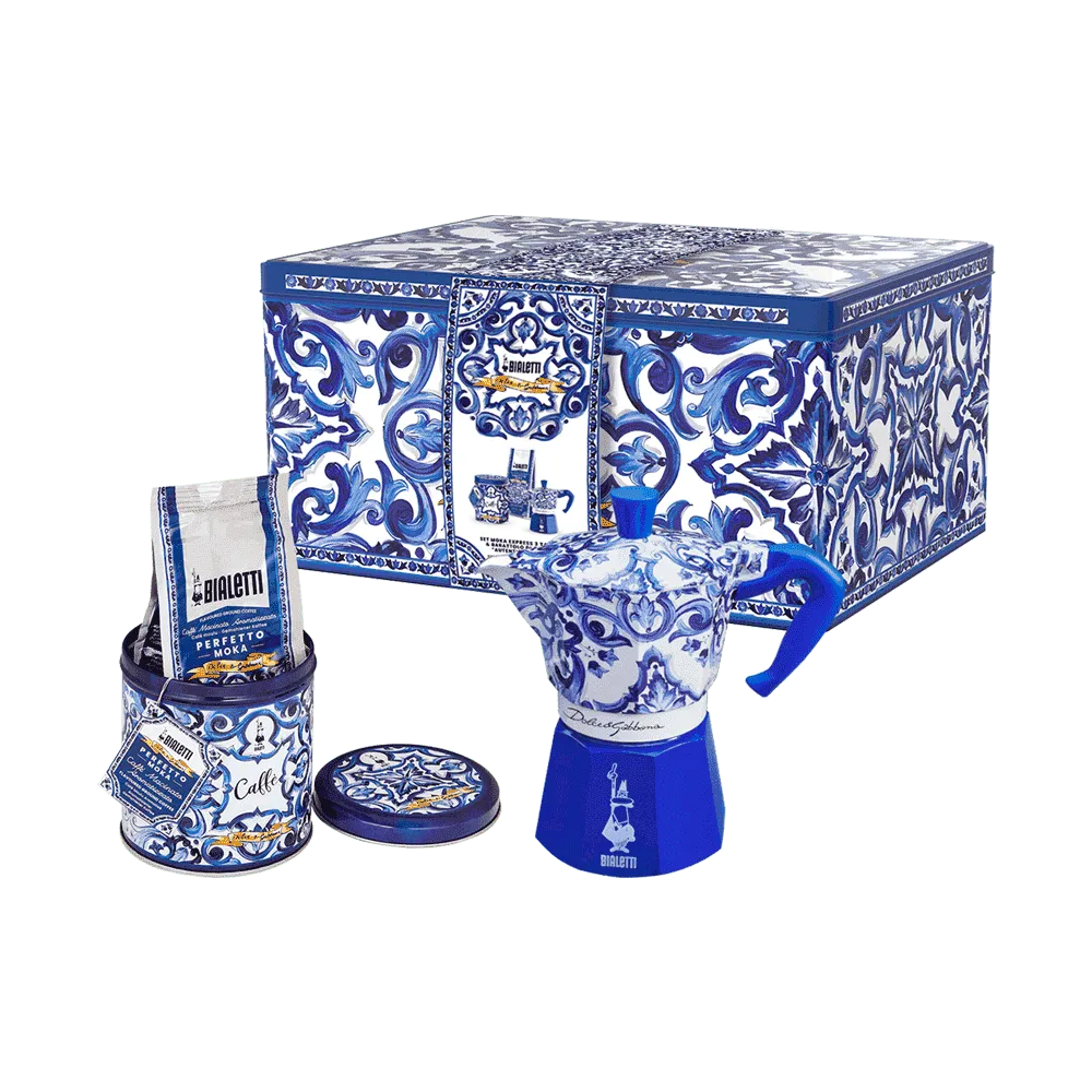 Dos iconos del Made in Italy se unen para celebrar la belleza del ritual italiano del café. Así nace la preciosa caja Bialetti Dolce&Gabbana, compuesta por la cafetera Moka Express Azul Mediterráneo 3 tazas y el café Autentico, Perfetto Moka Aromatizzato, contenido en una lata exclusiva, inspirada en la célebre cerámica mayólica.