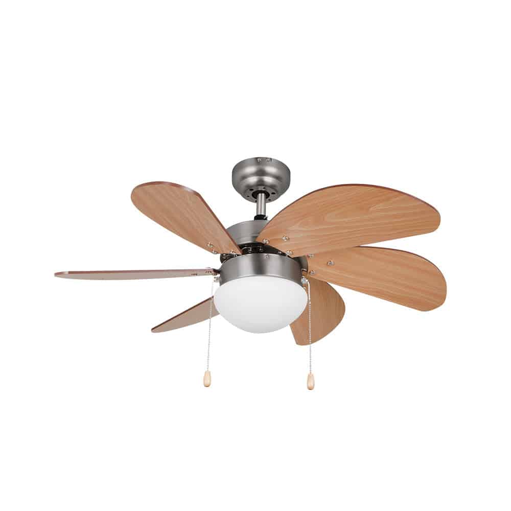 Cuando se adquiere un ventilador de techo hay que pensar también en cómo afectará la decoración del lugar. El CP 15075 de Orbegozo está confeccionado en color níquel con 6 palas color madera. Una combinación armónica que sienta bien con ambientes rústicos o modernos. Todo el mobiliario alrededor se ve favorecido con su presencia en el centro de la habitación.